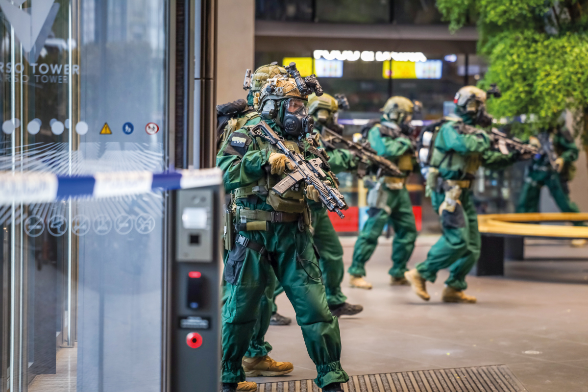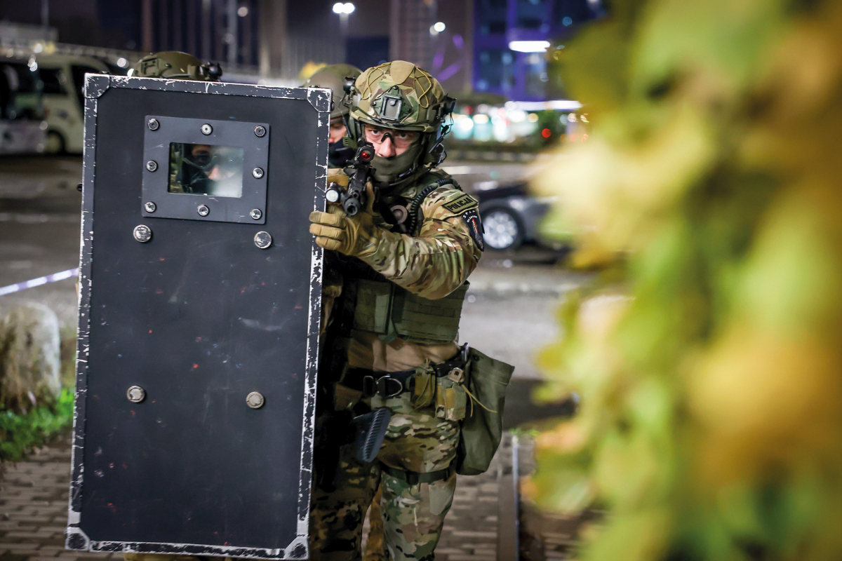 Policyjni negocjatorzy odpowiadali za utrzymanie kontaktu z napastnikami, ocenę ich zamiarów i próbę doprowadzenia do rozwiązania sytuacji bez użycia siły. Każde ich słowo miało znaczenie. To właśnie negocjacje często decydują o tempie i kierunku dalszych działań operacyjnych. Podczas ćwiczeń ważną rolę odgrywał sztab operacji, w skład którego wchodzili policjanci z Głównego Sztabu Policji KGP, CPKP „BOA” oraz Komendy Stołecznej Policji. W czasie rzeczywistym analizowali oni napływające informacje, oceniali ryzyko i decydowali o dalszej taktyce.