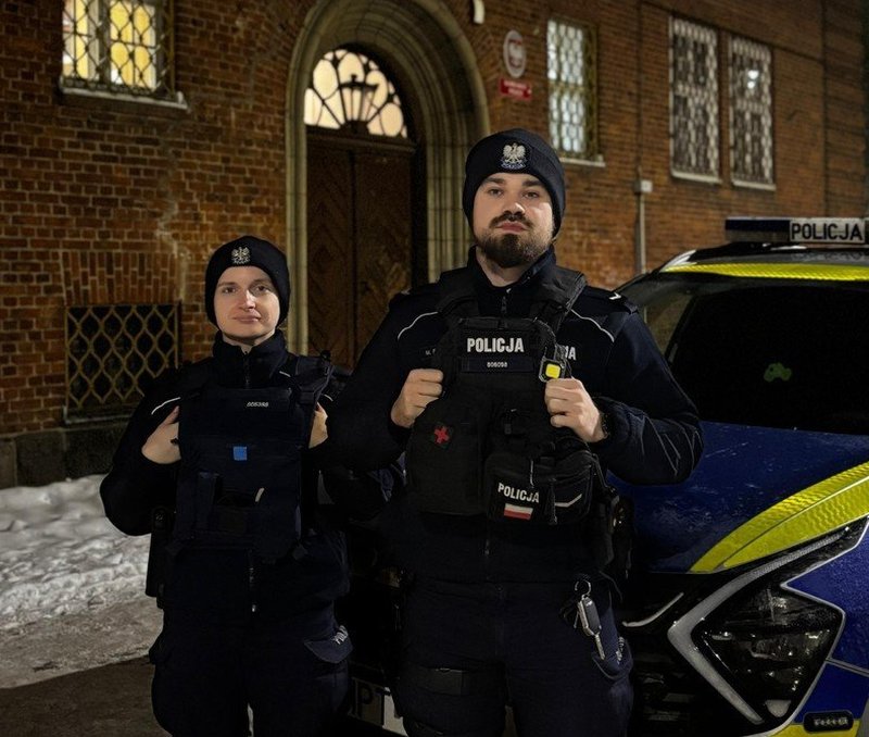2 stycznia – Dobre Miasto. Pod numer alarmowy zadzwonił starszy mężczyzna, prosząc o pomoc. Niestety kontakt z nim był utrudniony. Na interwencję pojechali funkcjonariusze sierż. Michał Brojanowski i post. Paulina Zabłocka-Smułkowska. Zadzwonili pod numer, z którego wpłynęło zgłoszenie. Senior, który odebrał telefon, nie wiedział, gdzie się znajduje, i nie mógł się ruszać. Policjanci, pozostając z nim w kontakcie, rozpoczęli poszukiwania. Poszli w kierunku świeżych śladów w zaspie śnieżnej i po kilkuset metrach zauważyli 87-latka leżącego bez butów. Policjanci udzielili mu pierwszej pomocy, owinęli kocem termicznym i wezwali na miejsce ratowników medycznych. Senior trafił do szpitala. Temperatura jego ciała wynosiła 34°C.
