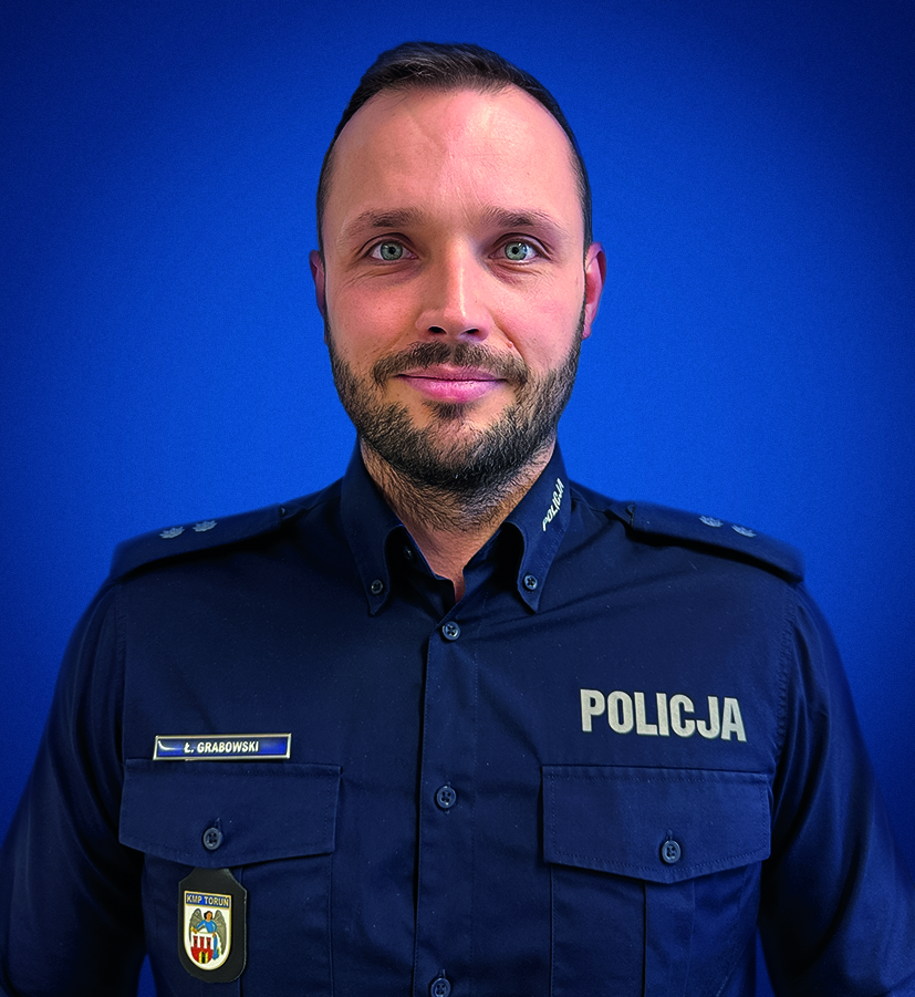 W kwietniu 2024 r. dyżurny KMP w Toruniu otrzymał zgłoszenie o nastolatce w kryzysie emocjonalnym, której życie mogło być zagrożone. Patrol zauważył 16-latkę, gdy była już w rzece. Porwał ją prąd. Znikała pod taflą wody, a gdy się wynurzała, wołała o pomoc. Podczas ratowania młodej kobiety współpracowało kilka patroli. Tego dnia podkom. Łukasz Grabowski prowadził nadzór prewencyjny i uczestniczył w tej interwencji. Wiedział, że przez niską temperaturę wody dziewczyna szybko straci siły. Złapał koło ratunkowe, zdjął część umundurowania, by nie ograniczały jego bezpieczeństwa oraz możliwości pływackich, i wskoczył do wody. Po około 100 m chwycił tonącą. Uspokajał ją, mówił, że zostanie uratowana. Nurt wody był jednak silny, a dopłynięcie do brzegu trudne, mimo koła ratunkowego. Z pobliskiej przystani dramatyczną sytuację obserwował flisak, który po chwili zareagował. Wsiadł do swojej łodzi, dopłynął do dryfującej pary. Nastolatka znalazła się na łodzi, potem z wody na pokład wydostał się policjant. Na brzegu poszkodowaną zajęli się ratownicy. Za ocalenie życia młodej kobiety podkom. Łukasz Grabowski otrzymał Medal im. Podkom. Policji Andrzeja Struja, nagrodę Animus Fortis (Mężny Duch), wyróżnienie „Osobowość Torunia” od prezydenta Torunia. W Policji pełni służbę od 2008 r., obecnie na stanowisku zastępcy naczelnika wydziału Sztab KMP w Toruniu. Podkreśla, że służba w Policji jest jego największa pasją.